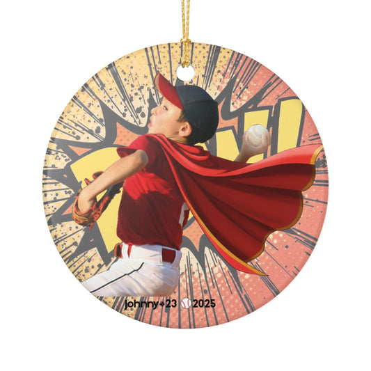Personalized Superhero BOW Baseball Ceramic Ornament