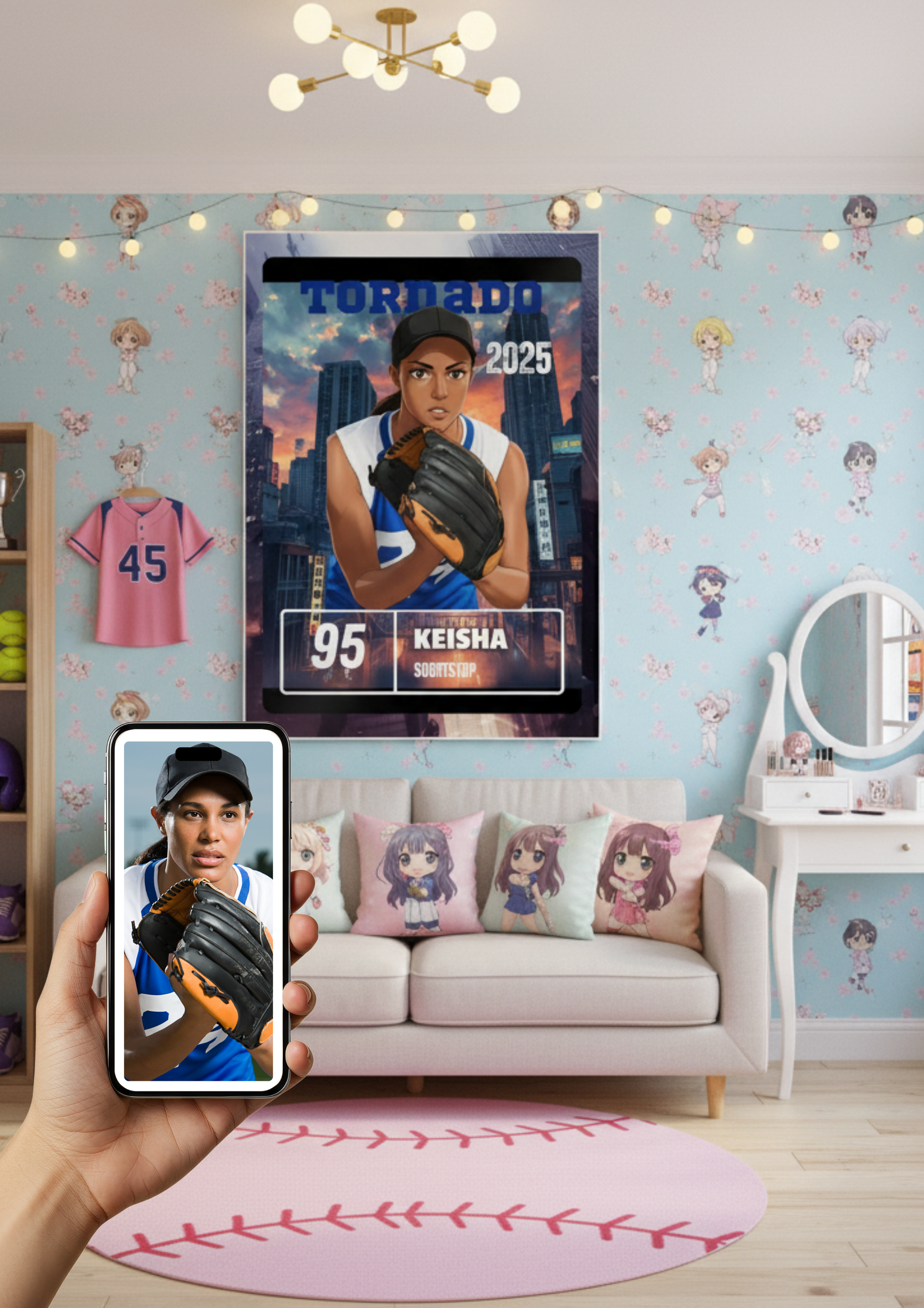 This personalized Baseball & Softball Japanese Anime Theme Poster features bright and crisp colors on high-gloss poster paper, creating a vibrant and eye-catching design. Perfect for sports enthusiasts who also love anime, this poster is a unique and personalized decoration for any room. Ideal for birthdays, sports events, or as a gift for anime fans.
