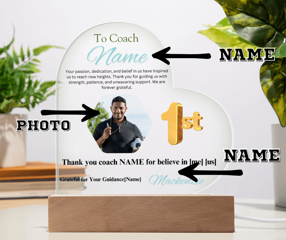 Choose your favorite artwork product. Upload a photo of the athlete's proud moment and a few details and place your order