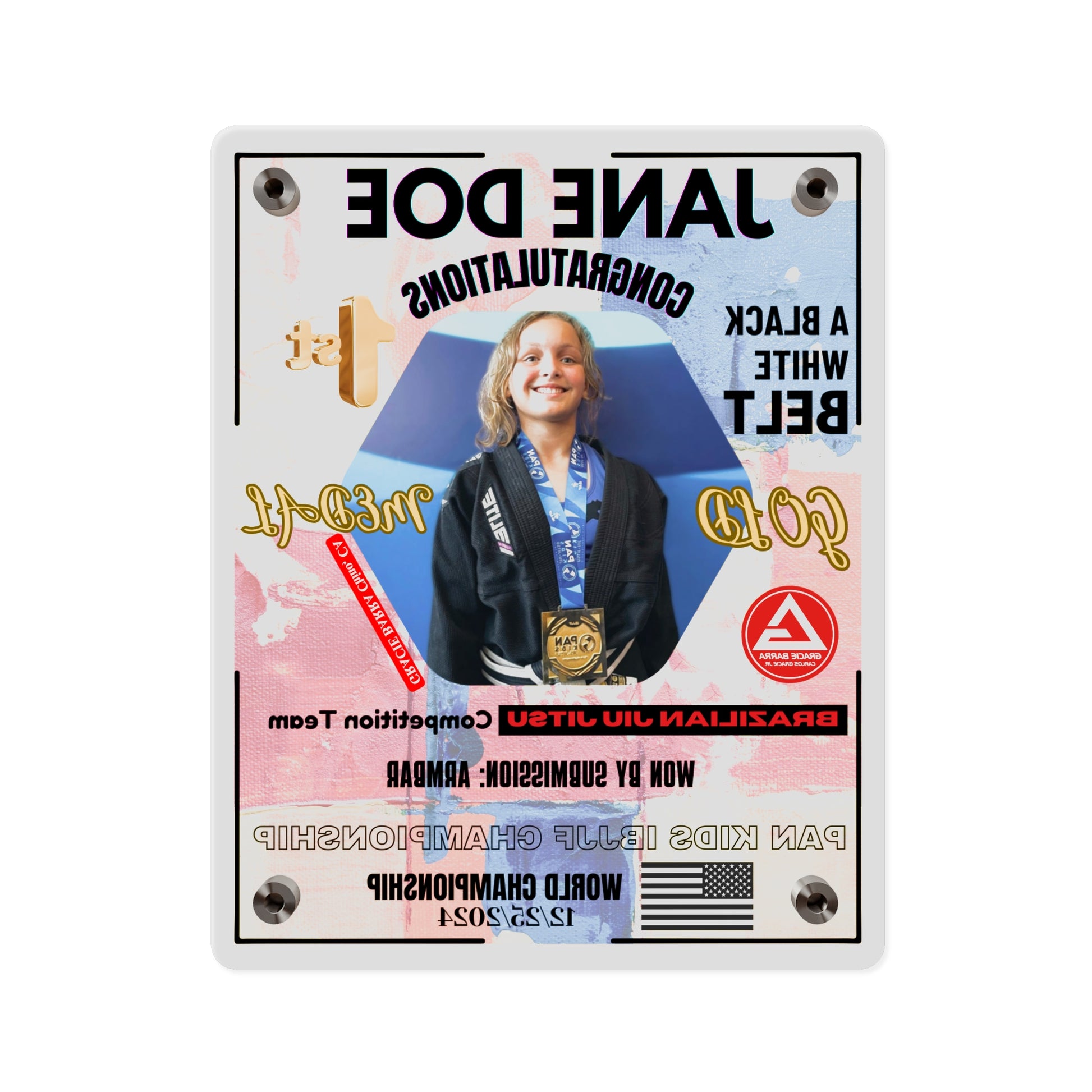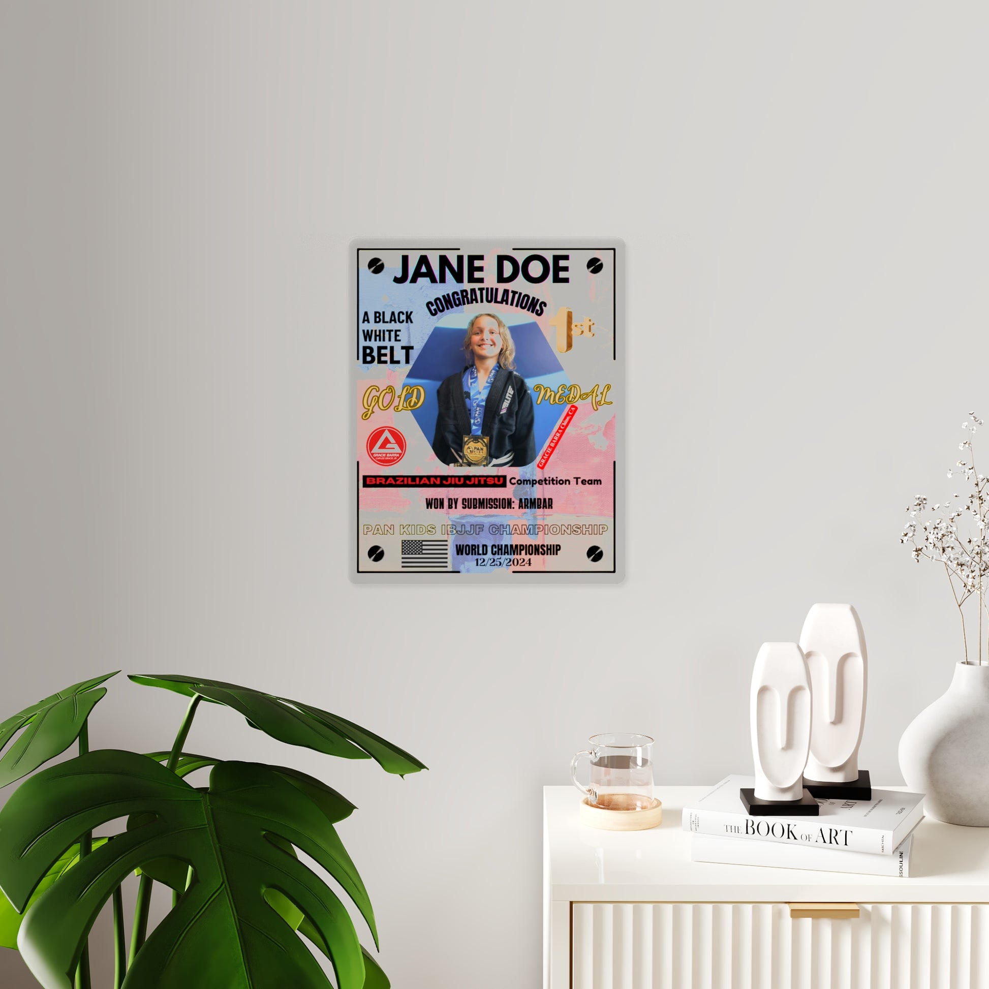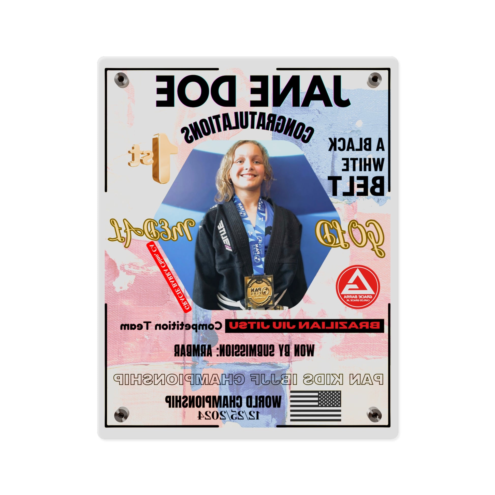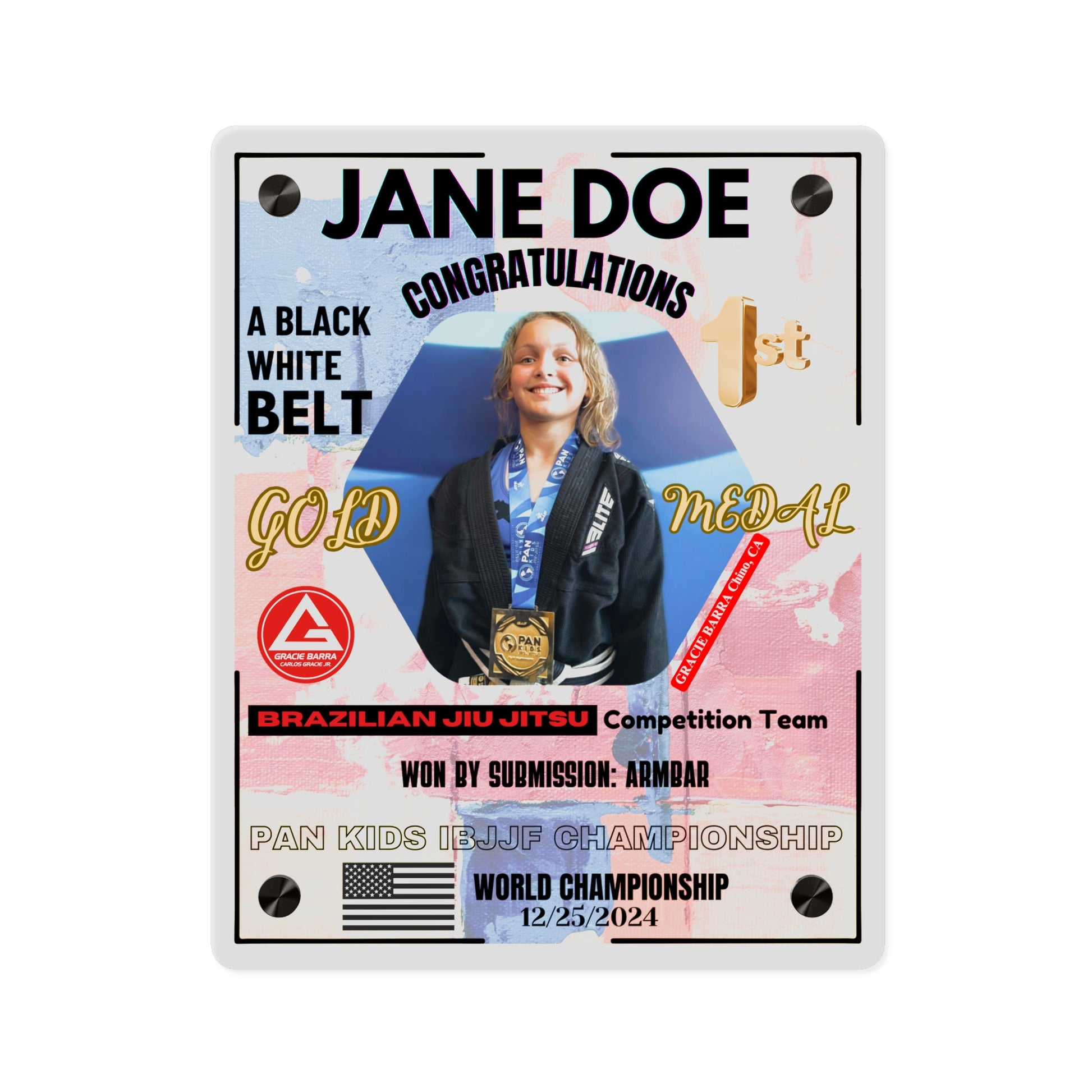 Crafted from high-quality acrylic, this sleek and durable panel is designed to showcase your accomplishments with style and pride. Whether it’s a championship win, promotion, or milestone, this wall art is a timeless keepsake that celebrates your dedication to the art of Jiu-Jitsu.