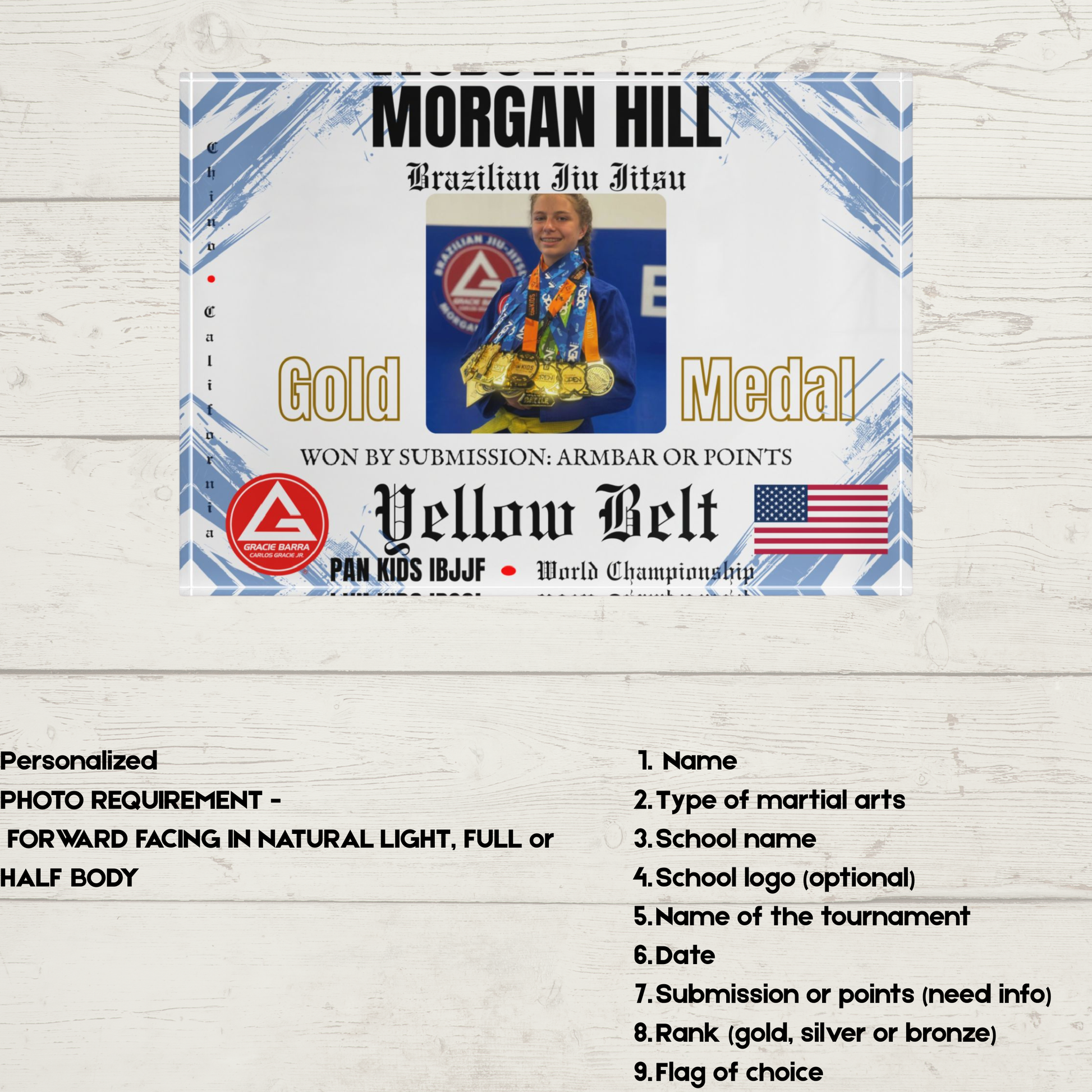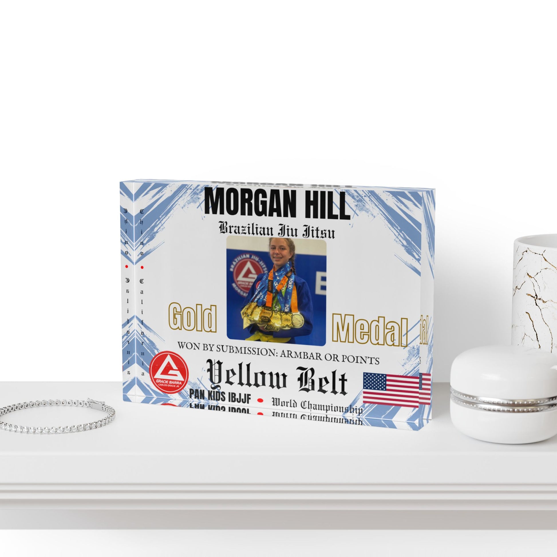 Personalized Photo Block - Kids Martial Art - BJJ - Judo Tournament Keepsake - White Blue
